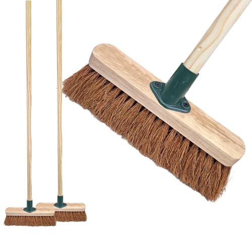 TDBS 18” Soft Natural Coco Indoor or Outdoor Broom, Large Sweeping Brush with Soft Bristle Broom Head and 120cm Long Wooden Broom Handle for Cleaning Dry Pathways, Gardens, Decking, and Block Paving