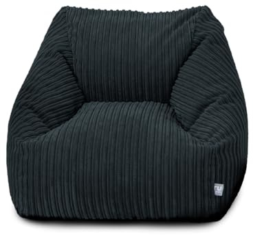 Chickwin - Bean Bag Chair Cover, Corduroy Bean Bag Chair Without Filling - For Outdoor and Indoor Relaxation, Lounge Chair, Bedroom Cushion - Black - 85 x 110 cm