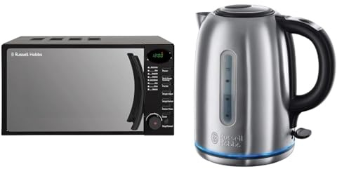 Russell Hobbs RHM2563 25L Digital 900w Solo Microwave Stainless Steel & 20460 Quiet Boil Kettle, Brushed Stainless Steel, 3000W, 1.7 Litres