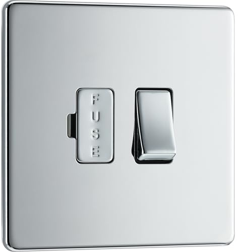 BG Electrical Switched Fused Connection Unit with LED Power Indicator, Fused Spur Switch, Double Pole, Screwless Front Plate, Slim Profile, Premium Flatplate, Polished Chrome, 13A, FPC52