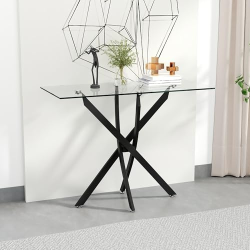 URBNLIVING Two-Tone Modern Decorative Console Entryway Telephone Narrow Table Sofa Table for Living Room, Hallway, Office (Glass Top and Black Legs)
