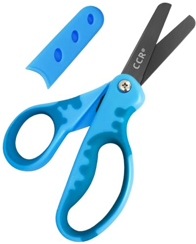 LIVINGO 5" Kids Scissors, Left/Right Handed Blunt Stainless Safety Stationery Toddler Preschool Child Scissors with Cover, School Classroom Craft Supplies for Teachers, 3 Pack Assorted Color