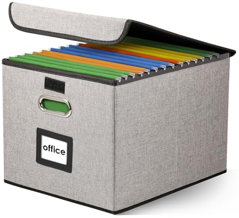 Collapsible Document Storage Box The cover with Velcro ensures easy access to the file box while providing ample storage space for files. It serves as a compact filing cabinet for tax documents, legal files, and other important papers. When not in use, the box can be easily folded to save space.