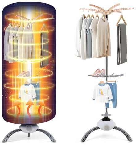 OuDiLee Electric Clothes Dryer, 900W Portable Drying Pod|2-Tier Heated Airer with Hot Air Circulation|Holds 12kg for Quick-Dry Laundry & Delicate Clothing