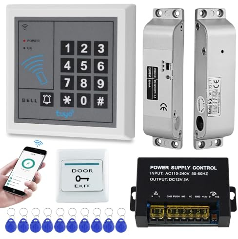 FUSYTULY Outdoor Waterproof Access Control System Kits Wireless WiFi RFID Keypad Touch Password 125KHz 13.56MHz with 180KG Electric Magnetic Lock, Smart Tuya APP Remote Control