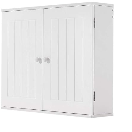 Panana Wall Bathroom Cabinet Wooden Storage Cupboard Unit Wall Mounted Cabinet with Double Doors Adjustable Shelf Furniture White