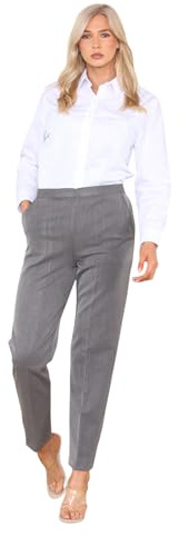 YAHOMI® Ladies Womens Half Elasticated Stretch Waist Work Office Trousers 2 Pockets Formal Pants Front Pockets Trouser Sizes 8 to 24 (UK, Numeric, 20, Regular, Regular, Standard, Grey 29'')