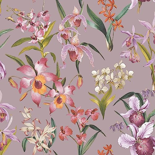 Rasch Maya Floral Wallpaper Tropical Orchids Exotic Flowers Lilac/Multi Colourful 283661
