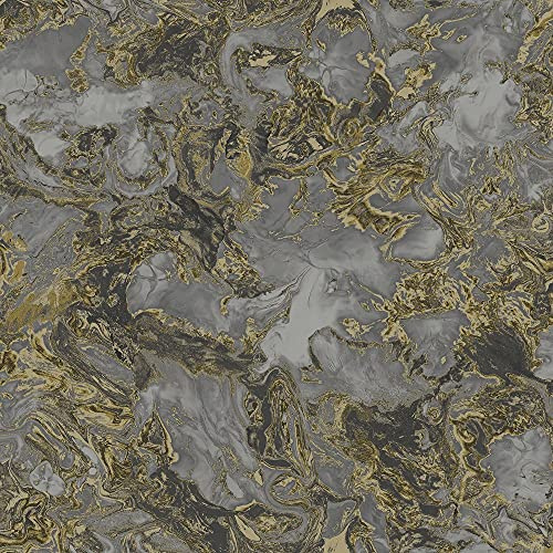 Introduce a contemporary feel to your walls with this breath taking metallic marble wallpaper from Muriva's Elixir collection. With metallic detail throughout, this unique design is an easy way to transform your home and give it that on-trend modern look in grey and gold tones.
