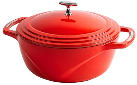 Lodge 7.38 litre / 7.8 quart Cast Iron/Porcelain Enamel Dutch Oven/Casserole Dish, Red