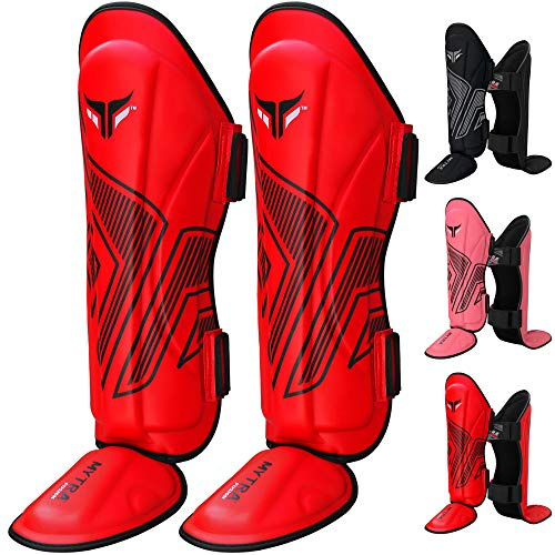Kickboxing, Muay Thai Shin Guards & Foot Protectors for, MMA Karate, Taekwondo, BJJ – Elasticated Shin Instep Pads – Martial Arts Sparring Leg Guards for Adults & Kids