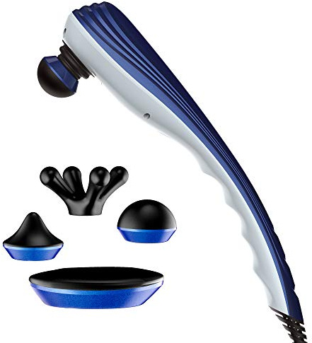 AMOS Massage Gun Deep Tissue Muscle Massager with 5 Speeds and 4 Heads Percussion Electric Handheld Massage Gun for Body Neck Shoulder Workout Recovery Pain Soreness Relief (Blue)