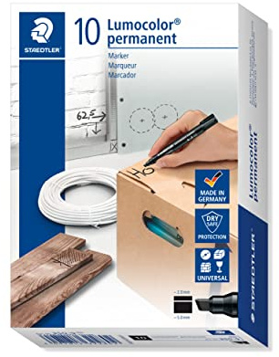 Versatile permanent marker for writing and marking on almost all surfaces, including cardboard, metal, plastic, tyres, glass, wood, stone, leather, clothes