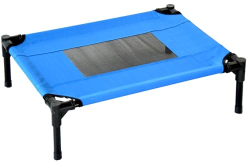 PawHut Dog Cat Puppy Pet Elevated Raised Cot Bed Portable Camping Basket – Blue (Medium)
