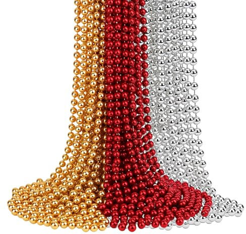 7.2m (24ft) Red Shiny Christmas Bead Chain Metallic Xmas Beaded Garland Artificial Pearls Tinsel For Christmas Tree Hanging Decorations DIY Art & Crafts Jeweller