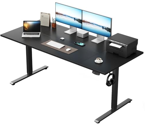 Devoko Electric Standing Desk 140x70cm, 18mm Thick Tabletop, Sit-Stand Height Adjustable with Sedentary Reminder, USB Charging Port, 3 Memory Smart Panel, Heavy-Duty Steel Frame (Black)