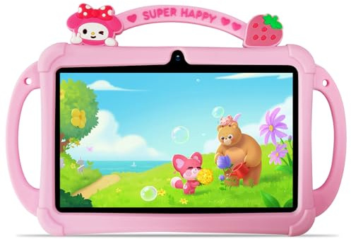 BYYBUO Kids Tablets 10.1 inch Android 13 for Children, Quad-Core Processor,4GB RAM + 64GB ROM, WiFi, 1280 x 800 HD/Dual Camere/Bluetooth, With Case & Parental Control App (Pink)